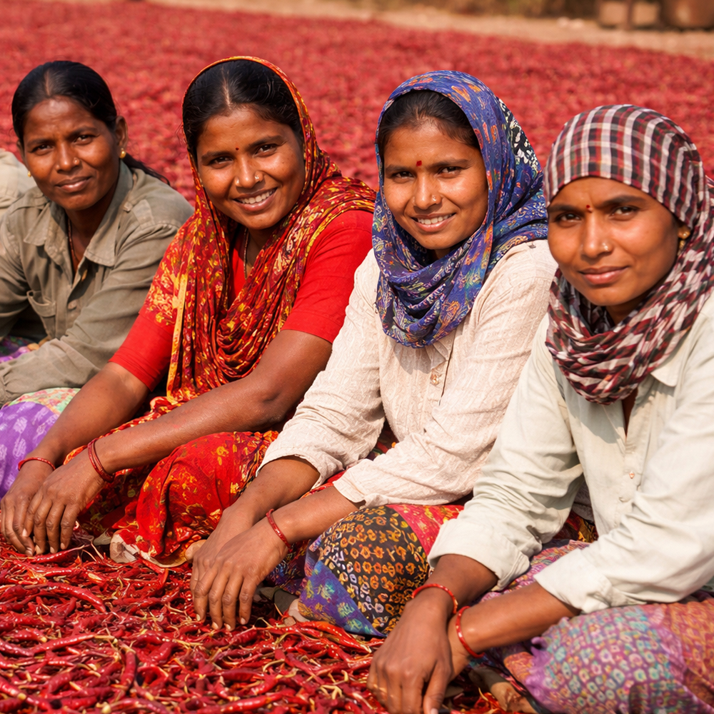 Women are central to our farming and quality journey. We support women through fair work, skill development, and leadership opportunities. Our CSR efforts focus on education, safe working conditions, and sustainable farming practices. By empowering women, we strengthen communities and deliver trusted Indian spices to global markets. Women-led