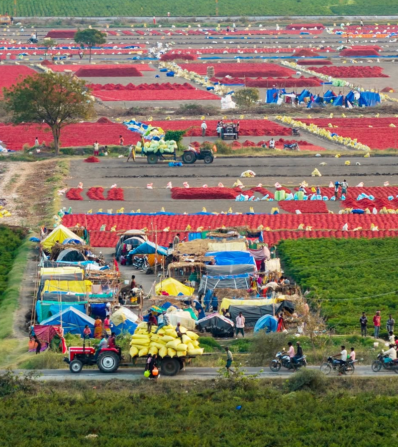 We are closely connected with farmers across Guntur, Nizamabad, Warangal, Khammam, Salem, Erode, Tamil Nadu, and Karnataka. Being at the center of these major spice-growing regions allows us to source authentic, fresh, and high-quality spices directly from farms, ensuring transparency and consistency.