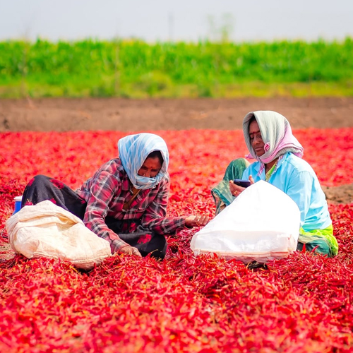 At C Indian Spices, we bring generations of farming expertise directly to global buyers. From the fertile fields of Guntur, Nizamabad, Warangal, Khammam, Salem, Erode, Tamil Nadu, and Karnataka, we source premium chillies and turmeric, sun-dried and carefully processed for export-quality standards. Women lead our farming and quality control, ensuring ethical sourcing, sustainability, and consistent excellence.